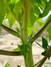 y es más esas áreas aún no producen. Tengo 100 plantas de papaya. El día de sembrar las papayas, la ceniza Agnihotra solo alcanzó para 60 plantas que ya tienen fruto, las 40 plantas restantes aún están en proceso de crecimiento y ni siquiera tienen flores. |