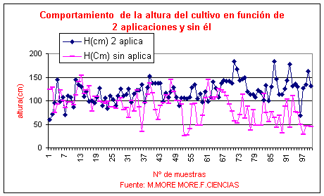 A1) COMPORTAMIENTO DE LA ALTURA DEL CULTIVO A 124 DÍAS DE SU PERÍODO DE SIEMBRA EN FUNCIÓN DE DOS APLICACIONES APLICACIÓN CON LA CENIZA DE LA AGNIHOTRA VS NINGUNA.