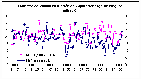 B1)COMPORTAMIENTO DEL DIAMETRO DEL TALLO DEL CULTIVO A 124 DÍAS DE SU ÉPOCA DE SIEMBRA EN FUNCIÓN DE DOS APLICACIONES DE CENIZA DE AGNIHOTRA VS SIN NINGÚN TRATAMIENTO DE CENIZA .