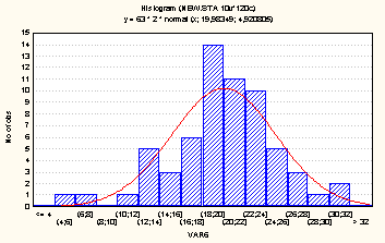A2) HISTOGRAMA DE FRECUENCIAS DE LA ALTURA CON UN TRATAMIENTO DE CENIZA AGNIHOTRA