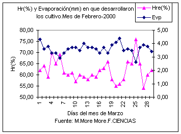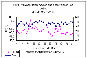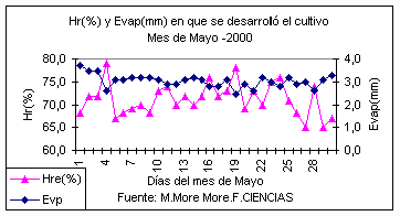 COMPORTAMIENTO ATMOSFÉRICO DE LOS CULTIVOS CON RELACIÓN AL Nº DE HORAS DE SOL DESDE ENERO DEL 2000 HASTA EL 30 DE MAYO DEL 2000