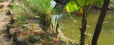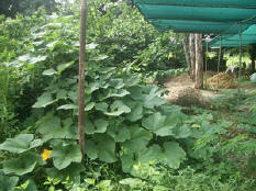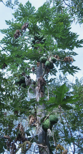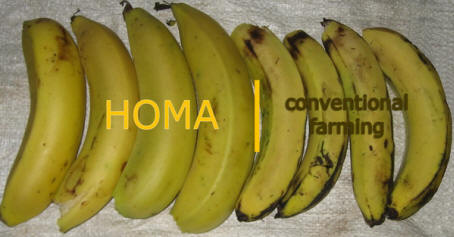 pueden alcanzar hasta 38 kilos. En las granjas vecinas el promedio del racimo es de 20 kilos y algunos cosechan racimos de 12 kilos. Es importante mencionar que los plantones de bananos originales en Tapovan eran de baja calidad, ya que nadie allí es experto en agricultura. El agricultor que vendió estos hijuelos de desecho no podía creer que al final Tapovan tenía mejor cosecha que el. |
