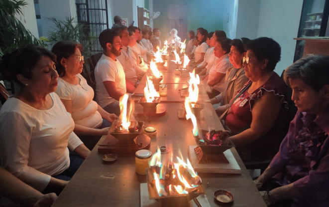La práctica constante de Agnihotra, a la salida y puesta del sol, crea una atmósfera de PAZ, BIENESTAR & SALUD. Hacerlo en grupo, aumenta estos efectos sanadores. Cada encuentro con los Fuegos Homa es un encuentro con el amor dentro de nosotros, que es nuestra verdadera naturaleza, reflejándose hacia los demás y conectando corazones... |