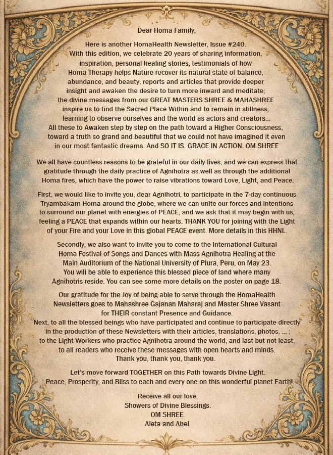 For more news about Homa Therapy please see the 'Satsang' magazine . |